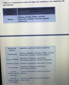 | Reactivos de prueba y técnicas Cuando se diseña un instrumento de evaluación se deben considerar los productos de aprendizaje deseados o metas. A través de la revisión del verbo o la tarea de aprendizaje que está descrita en el objetivo. | Congruencia entre los tipos de reactivos y los objetivos de aprendizaje |