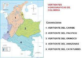 Hidrografía Colombiana VERTIENTES | El principal río de Colombia es el MAGDALENA: es una corriente de agua continua que desemboca en el mar Caribe. Con una longitud de más de 1500 km, es navegable desde Honda hasta su desembocadura, y su principal afluente es el río Cauca. |