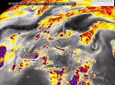 IMAGEN VAPOR DE AGUA | La imagen de satélite de vapor de agua mide la emisión de radiación tal como lo hacen las imágenes infrarrojas, pero a una longitud de onda diferente (una longitud de onda de radiación que se absorbe en gran medida por la humedad.)Áreas más brillantes en las imágenes representan áreas de mayor humedad en la parte media de la atmósfera.Áreas más oscuras representan áreas más secas o con poca humedad en la parte media de la atmósfera. Aire muy frío también puede aparecer bastante brillante, al igual que en el infrarrojo. |