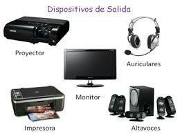 | Dispositivos de salida | Son los que permiten representar los resultados (salida) del proceso de datos. El dispositivo de salida típico es la pantalla o monitor. Otros dispositivos de salida son: impresoras (imprimen resultados en papel), trazadores gráficos (plotters), bocinas, entre otros... |