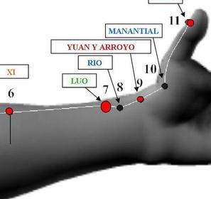 Punto arroyo (y Yuan) de Pulmón | 9P Taiyuan También es punto fuente (Yuan) |