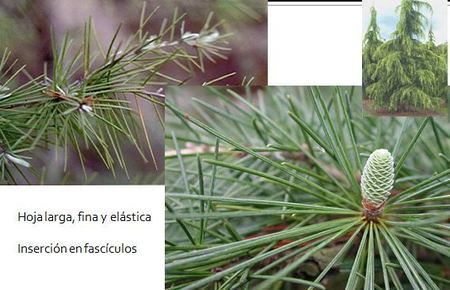 | Géneros | Larix Cedrus Tsuga Pícea Pseudotsuga Abies Pinus |