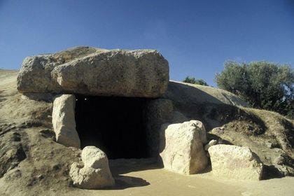 | Megalitismo | Es la cultura neolítica que estaba basada en la construcción de megalitos. Mega→grande, litos→piedra (uno o varios bloques grandes de piedra). Aparece en la cultura de los millares como una forma de enterramientos conjuntos en el periodo del cobre o Calcolítico. Algunos tipos de piedras son: menhir, dolmen, tolos o sepulcros de corredor. Cueva de Menga (Antequera), sepulcro, el Romeral (Antequera). |