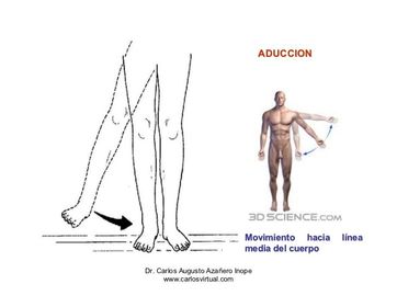| ADUCCIÓN | Acto de acercar un miembro al plano medio, es decir, el movimiento en dirección a la línea media. |