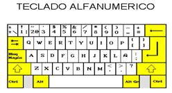 | El teclado alfanumérico es similar al teclado de una máquina de escribir, dispone de todas las letras del alfabeto, los diez dígitos decimales y todos los signos de puntuación y acentuación, además de la barra espaciadora. | |