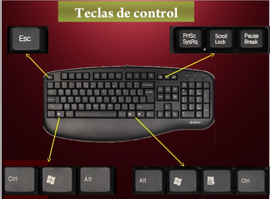 | Las teclas de control se sitúan entre el teclado alfanumérico y el teclado numérico, y bordeando el teclado alfanumérico (Shift, Intro, Insert, Tabulador...) Estas teclas permiten controlar y actuar con los diferentes programas. De hecho, cambian de función según la aplicación que se está usando. I | |