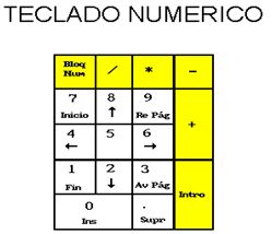 | El teclado numérico es similar al de una calculadora, dispone de los diez dígitos decimales, las operaciones matemáticas más habituales (suma, resta, multiplicación y división) Además de la tecla “Bloq Num” o “Num Lock” que activa o desactiva este teclado. |