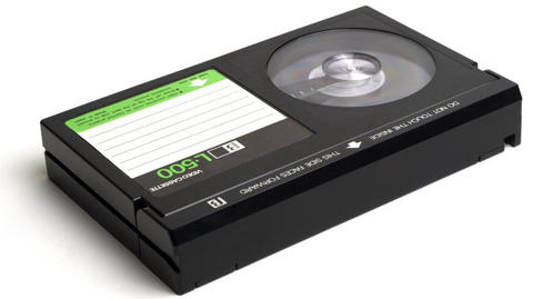 | VHS es semejante físicamente al sistema de audio (casete) solamente, pero con las diferencias de que la cinta magnética es mucho más ancha (½ pulgada) y la caja o videocasete de plástico que la contiene es más grande. Capacidad 120MB | |