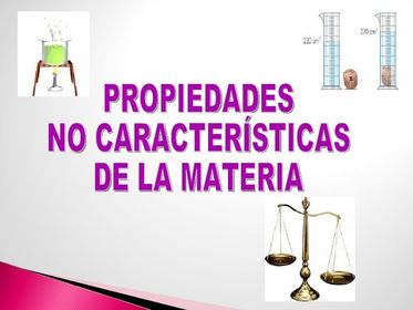 | Las Propiedades No Características de la materia son aquellas que dependen de la cantidad de materia. Estas son: masa, volumen y temperatura. | |