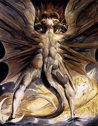 | "El dragón rojo y la mujer vestida de sol", William Blake. Óleo sobre lienzo, 1805. | |