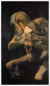 | "Saturno devorando a sus hijos", Goya. Óleo sobre lienzo, 1820. | |
