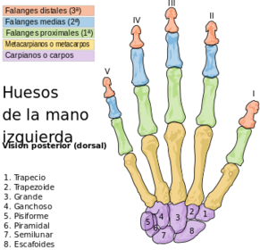 | ¿Cuántas falanges tiene el primer dedo de la mano? | 2 (distal y proximal) |