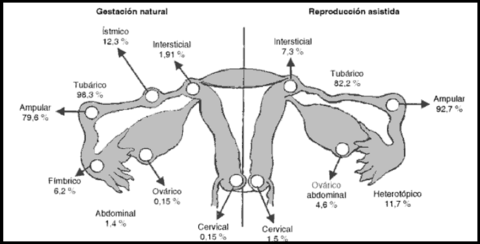 | Porciones de la tuba uterina | 1. Fimbrias 2. Ampollas 3. Istmo 4. Intersticial/intramural |