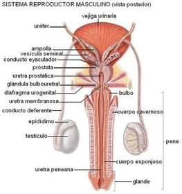 | Estructura que se comparte por aparato urinario y aparato reproductor y que es ducto final para orina y semen total | Uretra |