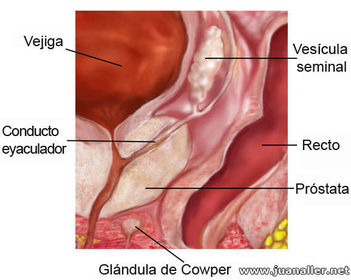 | Nombre de la estructura que se forma al juntar el conducto de las vesícula seminal con el segmento existente entre estas glándulas y la próstata | Conducto eyaculador |