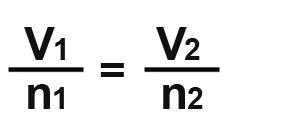 | Como lo describe la ley de Avogadro, dos volúmenes de un gas contienen el doble de moléculas y también el doble de moles del gas que un solo volumen del gas. | |