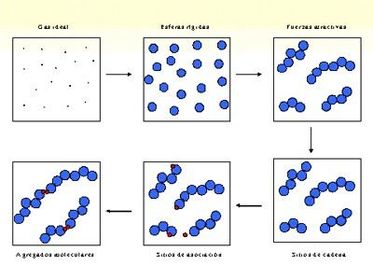 | -Las moléculas de un gas se encuentran prácticamente libres, de modo que son capaces de distribuirse por todo el espacio en el cual son contenidos. Las fuerzas gravitatorias y de atracción entre las moléculas son despreciables, en comparación con la velocidad a la que se mueven sus moléculas. -Los gases ocupan completamente el volumen del recipiente que los contiene. -Los gases no tienen forma definida, adoptando la de los recipientes que las contiene. -Pueden comprimirse fácilmente, debido a que existen enormes espacios vacíos entre unas moléculas y otras. | |