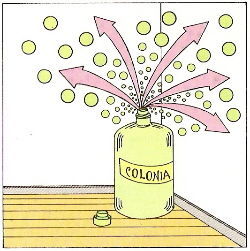 | Los gases son fluidos altamente compresibles, que experimentan grandes cambios de densidad con la presión y la temperatura. Las moléculas que constituyen un gas casi no son atraídas unas por otras, por lo que se mueven en el vacío a gran velocidad y muy separadas unas de otras, explicando así las propiedades: | |