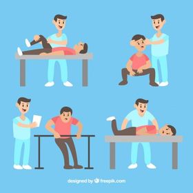 fisioterapeuta aplicación de tratamiento mediante agentes físicos y ejercicios terapéuticos para aliviar lesiones | |