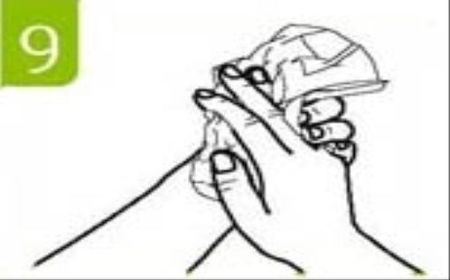 | 8. LIMPIE LAS YEMAS DE LOS DEDOS FROTANDO CONTRA LA PALMA DE LA MANO | |
