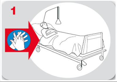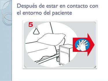 | 5. DESPUÉS DEL CONTACTO CON EL ENTORNO DEL PACIENTE | CUANDO: Después de tocar cualquier objeto o mobiliario en el entorno inmediato del paciente, al alejarnos (incluso si no se ha tocado al paciente). EJEMPLOS: Cambiar la ropa de la cama |