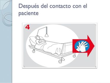 | 4. DESPUÉS DEL CONTACTO CON EL PACIENTE | CUANDO:Realizar la higiene de las manos después de tocar al paciente o su entorno inmediato, cuando nos alejamos de él/ella. EJEMPLOS: Al estrechar la mano, ayudar al paciente a moverse, realizar un examen clínico |