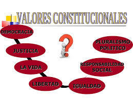 | VALORES CONSTITUCIONALES Son una serie de principios en los cuales se fundamenta nuestra Constitución y considera vitales para el sustento del ordenamiento jurídico. se constituye en un Estado social y democrático de Derecho, que propugna como valores superiores de su ordenamiento jurídico la libertad, la justicia, la igualdad | |