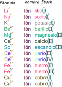 nomenclatura(stock). | llamada así en honor de su creador el científico Alfred Stock , utiliza números romanos que se incorporan al nombre del compuesto para indicar el numero de oxidación del elemento distintivo. |