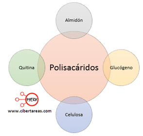 | POLISACÁRIDOS | Están formados por la unión de muchos monosacáridos, de 11 a cientos de miles. |