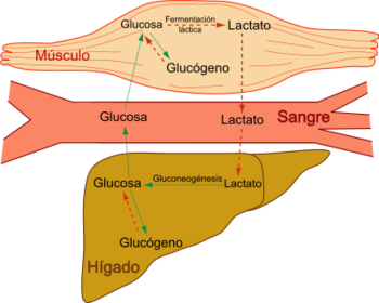 | GLUCÓGENO Es un polisacárido de reserva en animales, que se encuentra en el hígado (10%) y músculos (2%) | Una de las funciones del hígado es la de mantener constante la concentración de la glucosa sanguínea. Cuando hay un exceso de glucosa en la sangre, se fabrican glucógeno; cuando disminuye la glucosa de la sangre, el glucógeno se sintetiza en y es liberada a la sangre |