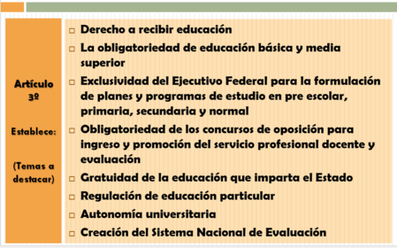 ARTÍCULO TERCERO CONSTITUCIONAL (aspectos relevantes) | |