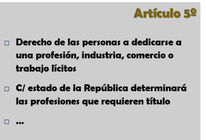 ARTÍCULO QUINTO CONSTITUCIONAL (Sobre la elección y ejercicio de una profesión) | |