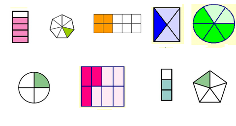 Se puede identificar una fracción, cuando se divide en partes iguales una figura. | A lo que se divide se le llama entero o unidad. |