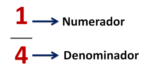 La fracción está formada por dos términos: el numerador y el denominador. | Numerador: este número indica las partes que se toman de un entero. Denominador: este número indica las partes en que se divide el entero. |