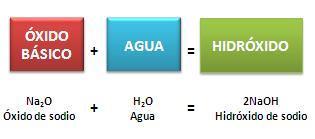 | Hidróxidos | Los hidróxidos son compuestos iónicos formados por un metal (catión) y un elemento del grupo hidróxido (OH-) (anión). Se trata de compuestos ternarios aunque tanto su formulación y nomenclatura son idénticas a las de los compuestos binarios. Su fórmula es (_OH-). Ejemplos: 1. KOH= Hidróxido de potasio 2. NaOH= Hidróxido de sodio |