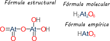 | Fórmulas | Empírica y Molecular Fórmula molecular si el elemento o el compuesto están formados por moléculas; en el caso de que se trate de cristales, se habla de su fórmula empírica. |