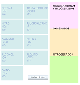 " GRUPOS FUNCIONALES " | Conjunto de átomos, enlazados de una determinada forma, que presentan una estructura y propiedades físico-químicas determinadas que caracterizan a los compuestos orgánicos que los contienen. |
