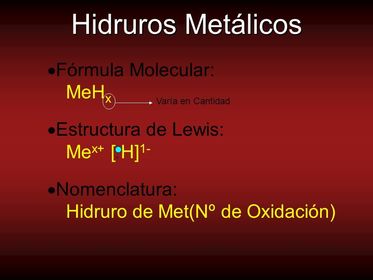 | Son compuestos binarios constituidos por hidrógeno y un elemento metálico. | |