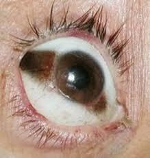 | Signo de Sommer Consiste en un triangulo oscuro con la base en la cornea, y otras veces en una simple línea oscura en el nivel del ecuador del ojo. |