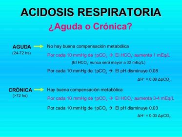 Acidosis Respiratoria Aguda Co2 se acumula rápidamente antes que los riñones puedan retornar el cuerpo a un estado de equilibrio Acidosis Respiratoria Crónica Ocurre durante un tiempo prolongado. Esto lleva a una situación estable, debido a que los riñones incrementan los químicos corporales | |