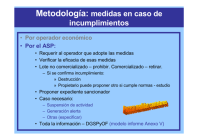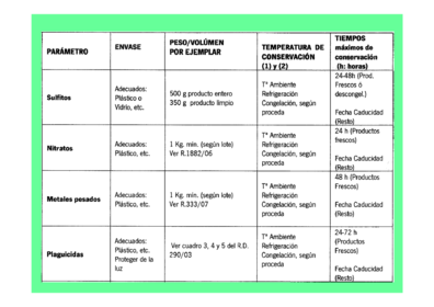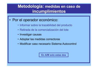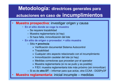 | Muestras oficiales | Prospectivas en A y M. Reglamentarias en F/E/O, y ante incumplimiento de prospectivas en A/M |