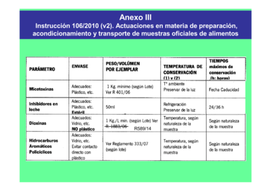 | muestras se deben acondicionar | Instrucción 106/2010 (Anexo I) |