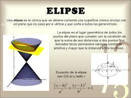 | ELIPSE: SE LE LLAMA ALA CURVA CERRADA Y PLANA Y PLANA QUE DETERMINA EL LUGAR GEOMÉTRICO DE LOS PLANOS CUYAS SUMAS DE DISTANCIAS A OTROS DOS FIJOS f y f LLAMADOS FOCOS ES CONSTANTE E IGUAL AL EJE MAYOR AB, ES UNA DE LAS CÓNICAS FUNDAMENTALES. | |