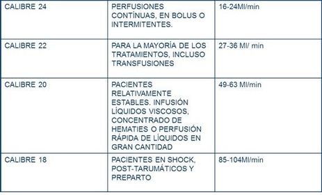 | CATETERS CON SU RESPECTIVO COLOR Y CUANTOS CC PASA POR MINUTO | |