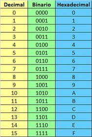 Hexadecimal | Para convertir un número binario en hexadecimal se realiza el mismo proceso, pero a la inversa. Para pasar el número hexadecimal al sistema decimal, se han de multiplicar los dígitos hexadecimales por las distintas potencias de base 16 que representan cada dígito del sistema de numeración hexadecimal. |