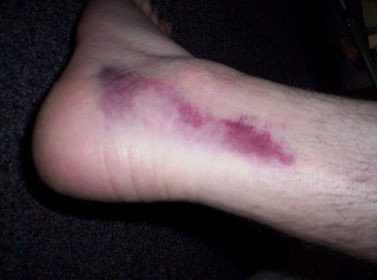 | Equimosis Manchas de color rojo violaceo de forma y extension variables, provocadas por extravasacion sanguinea que no desaparecen a la presion. | |