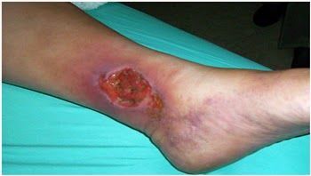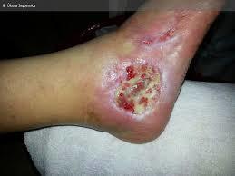 | Ulcera lesion circunscrita en forma de cráter que afecta a piel o mucosas. Consecutiva a la necrosis que pueden deberse a causas vasculares o a procesos inflamatorios, infecciosos o malignos. | |