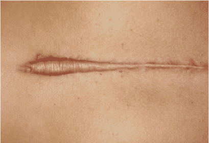 | Escaras placas de tejido necrosado que se presentan como una costa negra o pardusca y que alcanzan hasta planos profundos de la dermis. Aparecen frecuentemente en la zona sacra en pacientes que permanecen en posicion decubito dorsal por mucho tiempo | |