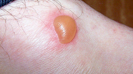 | Vesicula lesion que consiste en una pequeña coleccion de liquido seroso localizada en la epidermis y recubierta por una fina membrana | |