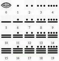 El Sistema de Numeración Maya. | Los mayas idearon un sistema de base 20 con el 5 cómo base auxiliar. La unidad se representaba por un punto. Dos, tres, y cuatro puntos servían para 2, 3 y 4. El 5 era una raya horizontal, a la que seañadían los puntos necesarios para representar 6, 7, 8 y 9. Para el 10 se usaban dos rayas, y de la misma forma se continúa hasta el 20, con cuatro rayas. |